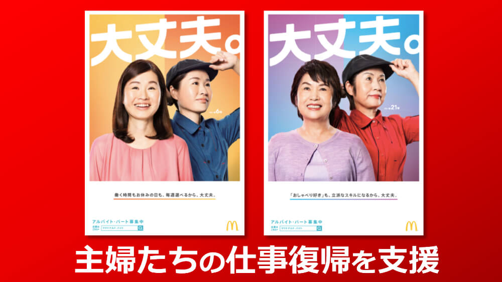 2017年、日本のメディアを席巻した「働き方改革」。連日、多くの記者が、日本のビジネスパーソンの長時間労働を伝え、その実態が社会問題として報じられた。しかし、こうした報道が過熱する一方で、実は日本には「働きたいのに働けない」女性が315万人いるという(総務省調査)。少子化社会を見据え、若者の職場からの脱却をめざすマクドナルドでは、主婦を支援する採用キャンペーン「マックなら、大丈夫」を実施した。
