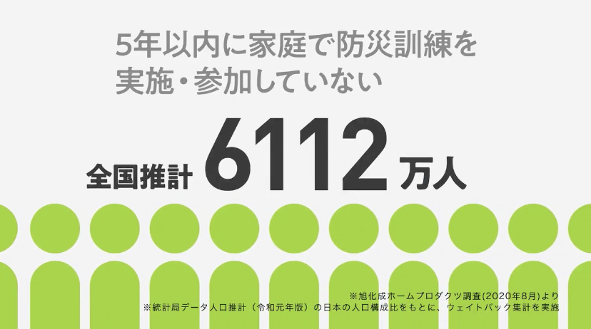 旭化成ホームプロダクツは、「あたりまえのまいにちを、この先も、ずっと。」のもと、SDGs に取り組んでいる。防災に関する調査から「過去5年以内、家庭での防災訓練を実施・参加していない78.6%」、「家庭で防災対策に費やす時間=わずか10.1分/年」が明らかに。在宅時の災害リスクの増大は、コロナ禍の社会課題であった。