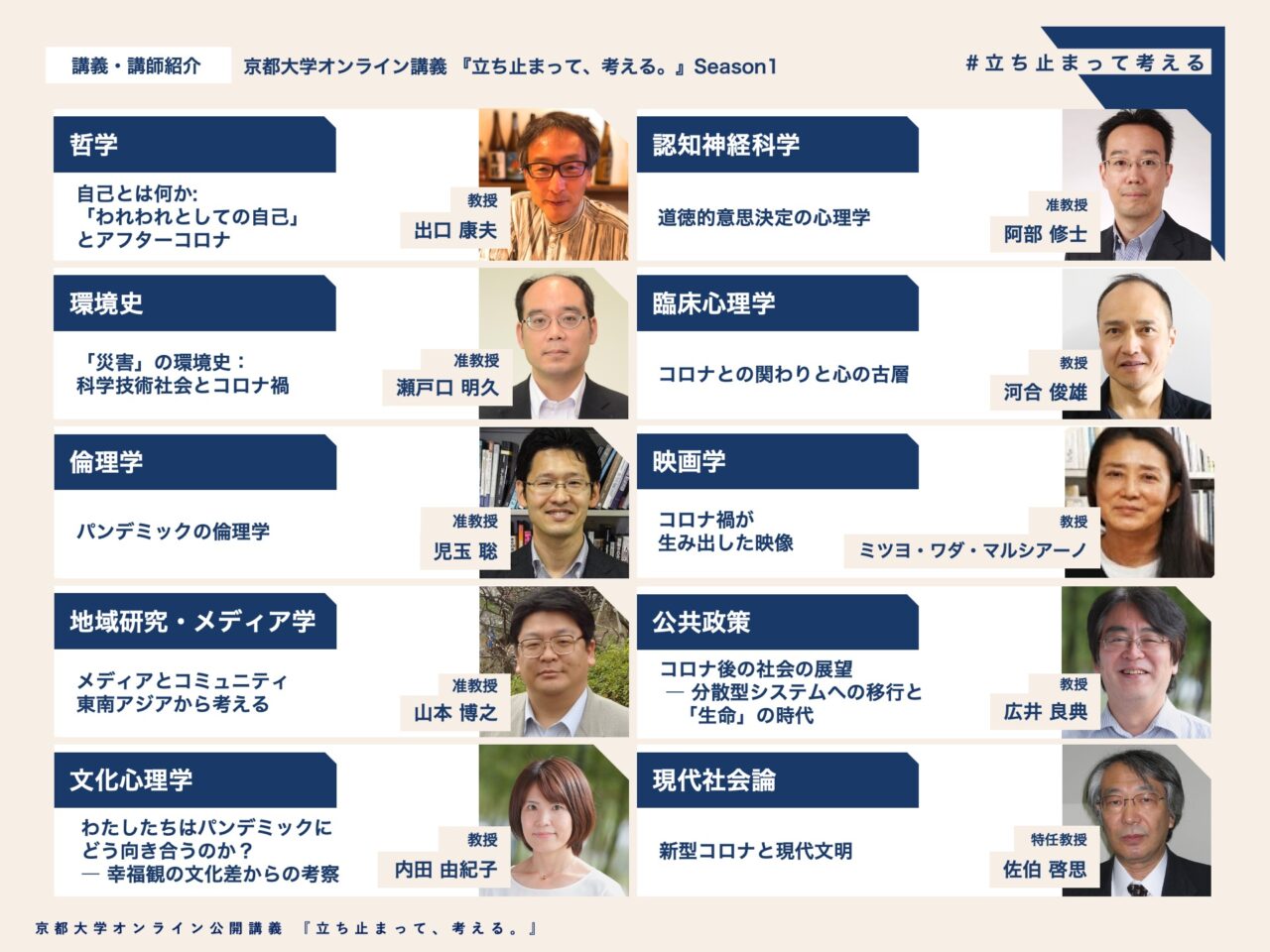 京都大学オンライン公開講義「立ち止まって、考える。」~ウィズコロナの社会を見据え、学びの機会をオンラインで共有するプログラム~