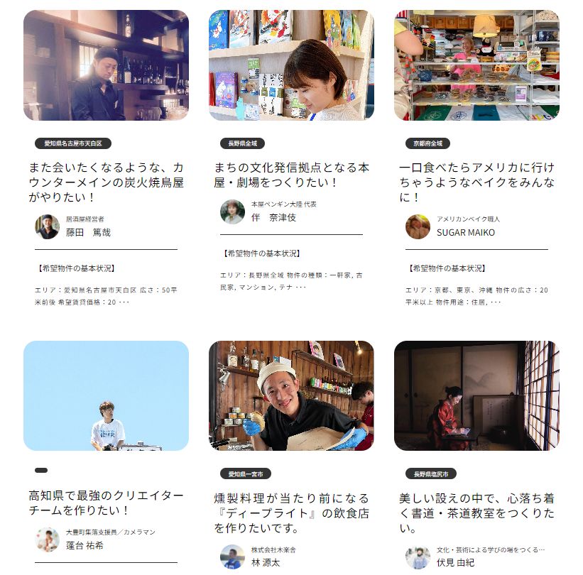 さかさま不動産は、家の情報ではなく「借り手」の情報を開示して、共感する大家とマッチングするサイトである。従来の不動産流通の仕組みを逆にすることで、「貸す人や使途を選びたい」「物件情報を公開せずに借り手を探したい」と考える非流通空き家の大家の希望を叶えるのはもちろん、チャレンジ精神を持つ人を地域に誘致する際の有効なシステムとしても役立っている。現在では、「劇場をつくりたい」「楽器アトリエがほしい」などの想いも掲載されている。