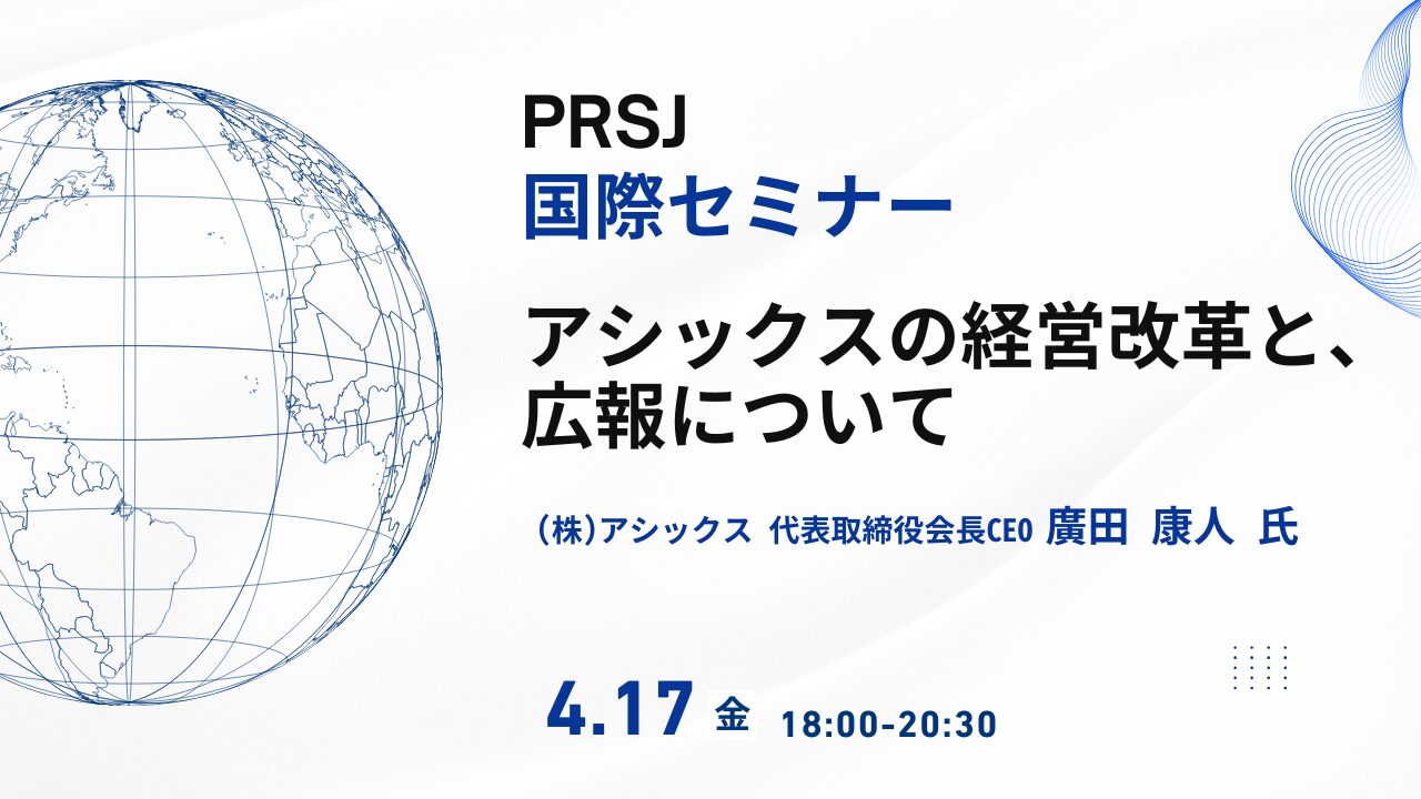 なお、対面でご参加の皆様には、当日お食事をご用意し、廣田会長CEOとの交流(途中退席の可能性があります)も含めて国際的な視点や会員間の親睦を深めていただく場を設けさせていただきます。これからの広報・PR活動にご活用いただければ幸甚です。