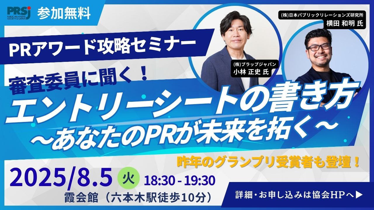 「PRアワード 2025」応募受付開始を間近に控えた 8月5日(火)18時30分から、【PRアワード 2025 攻略セミナー】を開催いたします。