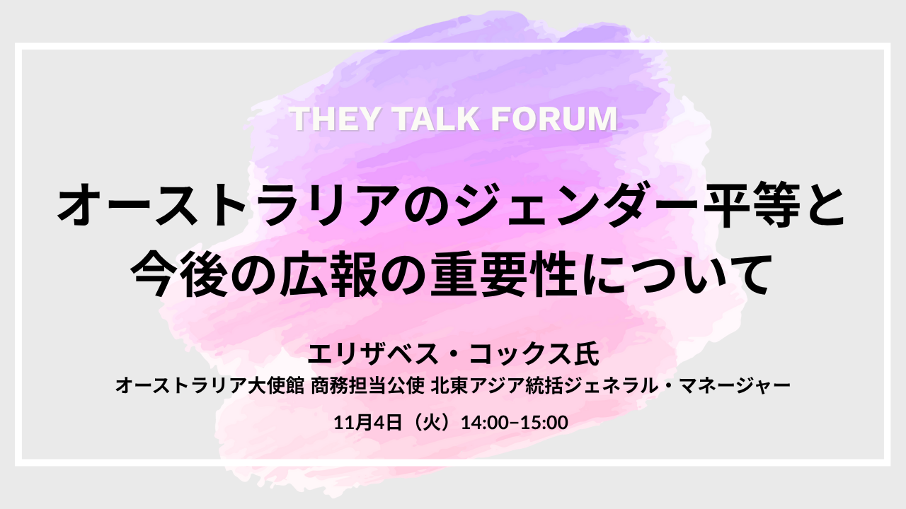 オーストラリアのジェンダー平等の現状・今後ならびに私的経験に基づいた広報の重要性の高まりについて
